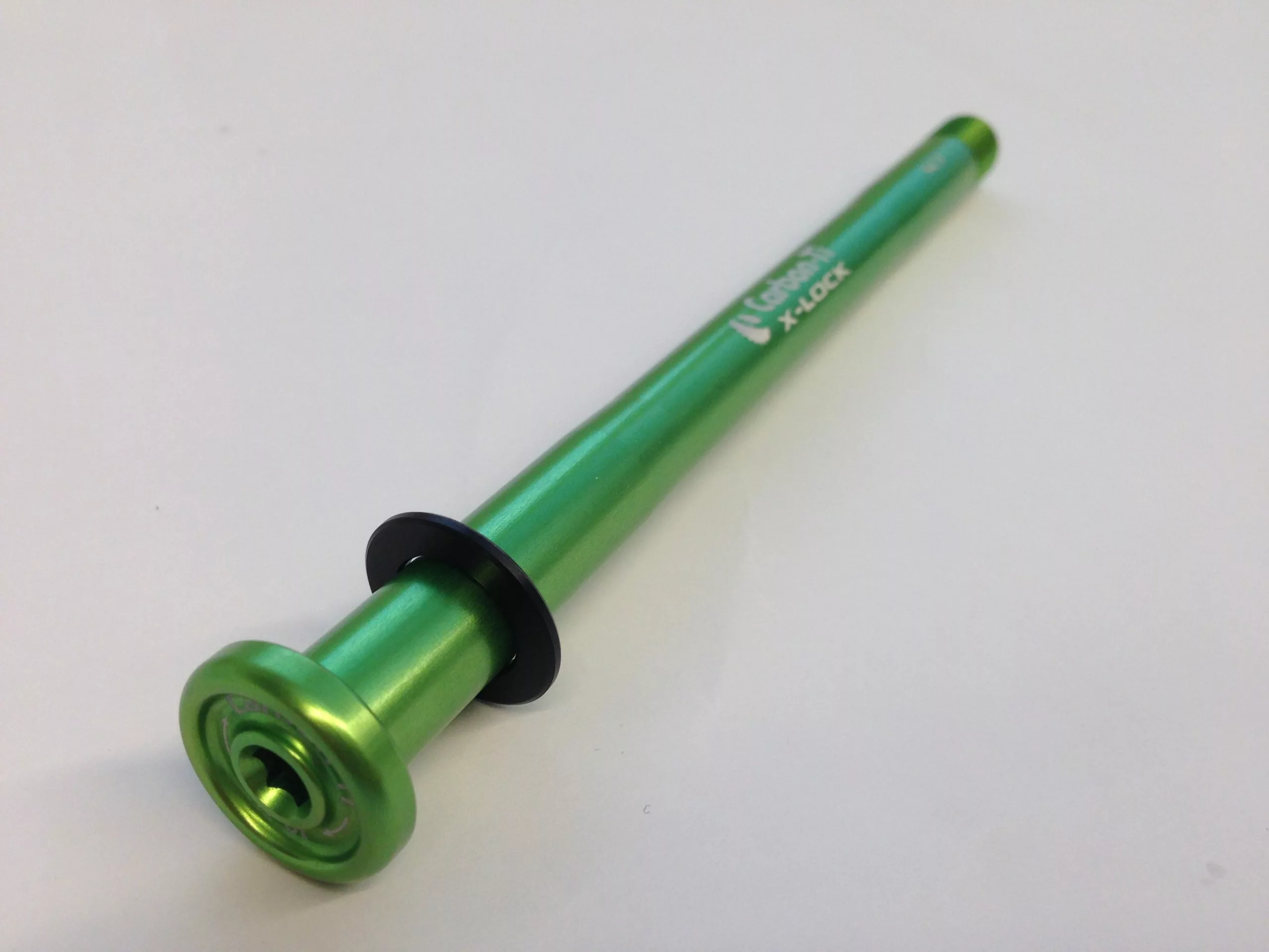 Die X-Lock X-E-Thru 12 x 142 Steckachsen von Carbon-Ti werden aus einem Stück Aluminium 7075 hergestellt. Die Achse ist mehrfach konifiziert, um das Gewicht auf niedrige 34g zu drücken. egenüber der Scott 12×142 mm Steckachse werden ungefähr 30g eingespart. Die Befestigung erfolgt über einen 5mm Inbusschlüssel.