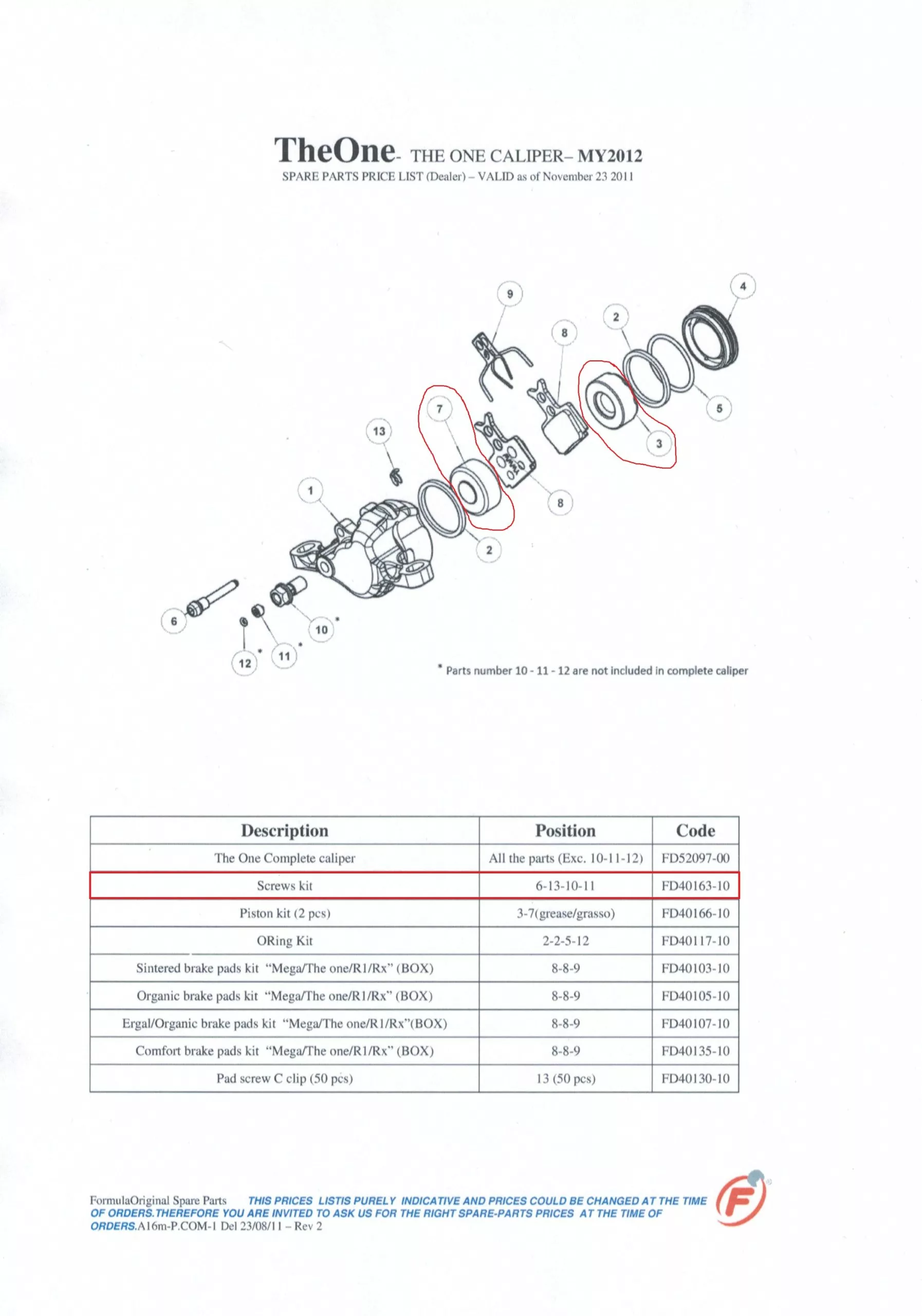 Lieferumfang: 2Stk. Formula The One Bremssattel – Kolben