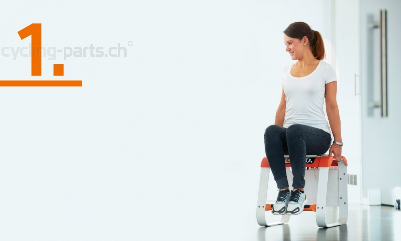 1. Die Messpappe auf eine glatte Oberfläche legen. Mit aufrechtem Rücken darauf setzen und mit den Händen an die Messpappe heran ziehen.